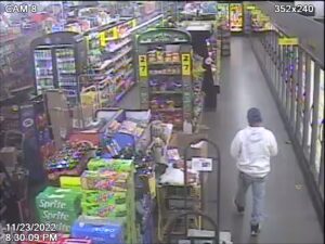 December 21, 2022On November 25th, 2022, a report was filed with the Granville County Sheriff’s Office in reference to an unknown person(s) removing cash from a wallet at Dollar General in Wilton. The victim advised the wallet was accidently dropped and when it was retrieved, $150 was removed. Surveillance footage shows the suspect as a white male in a blue hat and white hoodie.